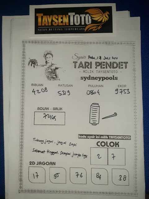 Daftar togel online terpercaya di JON4D untuk mendapatkan sebuah kode syair togel terjitu setiap harinya. Pastikan saja Anda tidak akan pernah melewatkan semua syair yang kami berikan ini. Syair Togel Sydney ini adalah yang paling banyak dicari oleh para pemain togel. Untuk itu tidak salah lagi jika anda sebagai Pemain togel online harus mengikuti secara terus menerus semua syair yang kami terbitkan di prediksi ini.