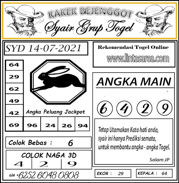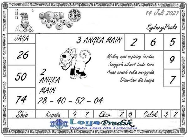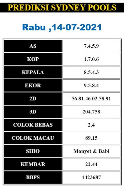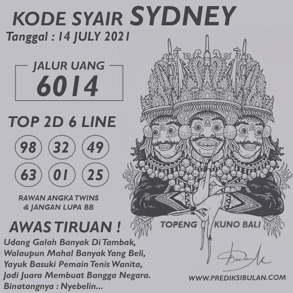 Jenis Permainan Togel Online ini sangat membutuhkan kesadaran dan kepekaan dalam membaca dan juga mamprediksi suatu angka togel. Terutama Syair 14 Juli 2021, dalam forum syair sydney hari ini, kalian akan menemukan kode syair sydney hari ini, nah dalam prediksi togel sydney hari ini, kalian akan mendapatkan syair togel sydney terlengkap hanya di JON4D Sebagai Situs Judi Togel Online terbesar di Indoneisa. Dimana kami munculkan Syair Sydney terjitu agar memudahkan pemain dalam memahami angka keluaran di periode selanjutnya.