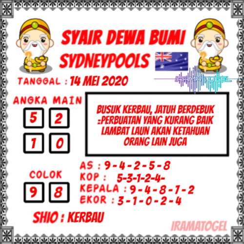 Jenis Permainan Togel Online ini sangat membutuhkan kesadaran dan kepekaan dalam membaca dan juga mamprediksi suatu angka togel. Terutama Syair Sydney 14 Mei 2020, dalam forum syair sydney hari ini, kalian akan menemukan kode syair sydney hari ini, nah dalam prediksi togel sydney hari ini, kalian akan mendapatkan syair togel sydney terlengkap hanya di JON4D Sebagai Situs Judi Togel Online terbesar di Indoneisa. Dimana kami munculkan Syair Sydney terjitu agar memudahkan pemain dalam memahami angka keluaran di periode selanjutnya.