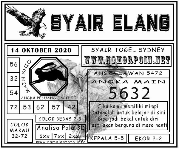 Jenis Permainan Togel Online ini sangat membutuhkan kesadaran dan kepekaan dalam membaca dan juga mamprediksi suatu angka togel. Terutama Syair 14 October 2020, dalam forum syair sydney hari ini, kalian akan menemukan kode syair sydney hari ini, nah dalam prediksi togel sydney hari ini, kalian akan mendapatkan syair togel sydney terlengkap hanya di JON4D Sebagai Situs Judi Togel Online terbesar di Indoneisa. Dimana kami munculkan Syair Sydney terjitu agar memudahkan pemain dalam memahami angka keluaran di periode selanjutnya.