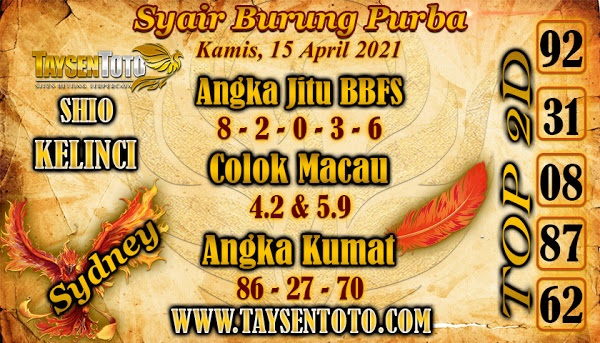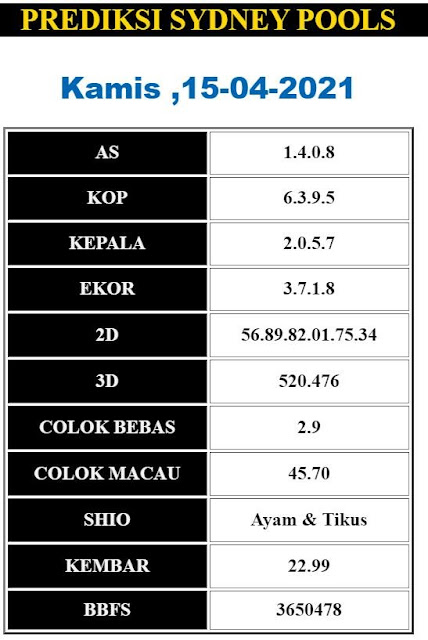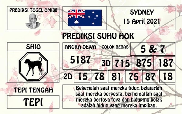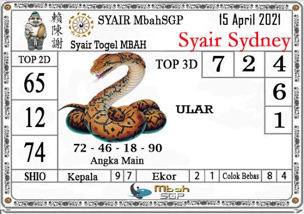 Oh ya, Selalu pergunakan naluri anda untuk membaca makna dari Prediksi Syair Sydney 15 April 2021. Janganlah membaca Prediksi Syair Sydney Terjitu dengan terlalu menggebu – gebu dari makna syair yang telah kami berikan. Pahamilah dengan pelan hingga mengerti maksud dari syair yang paling banyak dicari oleh pemain judi togel online ini. Setelah kalian memahami prediksi Syair Sydney ini Kemenangan dengan lebih mudah bisa kalian raih.