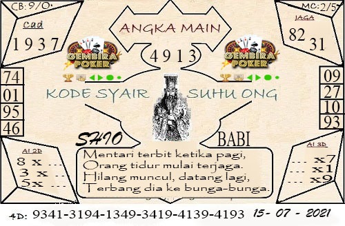 Jenis Permainan Togel Online ini sangat membutuhkan kesadaran dan kepekaan dalam membaca dan juga mamprediksi suatu angka togel. Terutama Syair 15 Juli 2021, dalam forum syair sydney hari ini, kalian akan menemukan kode syair sydney hari ini, nah dalam prediksi togel sydney hari ini, kalian akan mendapatkan syair togel sydney terlengkap hanya di JON4D Sebagai Situs Judi Togel Online terbesar di Indoneisa. Dimana kami munculkan Syair Sydney terjitu agar memudahkan pemain dalam memahami angka keluaran di periode selanjutnya.