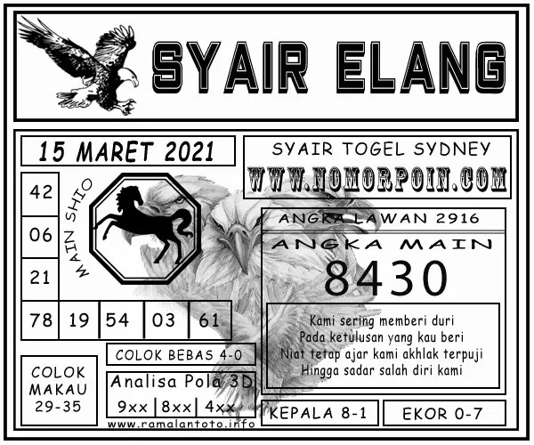Jenis Permainan Togel Online ini sangat membutuhkan kesadaran dan kepekaan dalam membaca dan juga mamprediksi suatu angka togel. Terutama Syair 15 Maret 2021, dalam forum syair sydney hari ini, kalian akan menemukan kode syair sydney hari ini, nah dalam prediksi togel sydney hari ini, kalian akan mendapatkan syair togel sydney terlengkap hanya di JON4D Sebagai Situs Judi Togel Online terbesar di Indoneisa. Dimana kami munculkan Syair Sydney terjitu agar memudahkan pemain dalam memahami angka keluaran di periode selanjutnya.