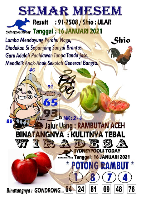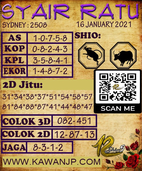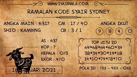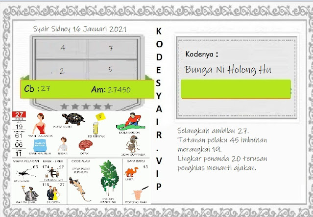 Jenis Permainan Togel Online ini sangat membutuhkan kesadaran dan kepekaan dalam membaca dan juga mamprediksi suatu angka togel. Terutama Syair 16 Januari 2021, dalam forum syair sydney hari ini, kalian akan menemukan kode syair sydney hari ini, nah dalam prediksi togel sydney hari ini, kalian akan mendapatkan syair togel sydney terlengkap hanya di JON4D Sebagai Situs Judi Togel Online terbesar di Indoneisa. Dimana kami munculkan Syair Sydney terjitu agar memudahkan pemain dalam memahami angka keluaran di periode selanjutnya.