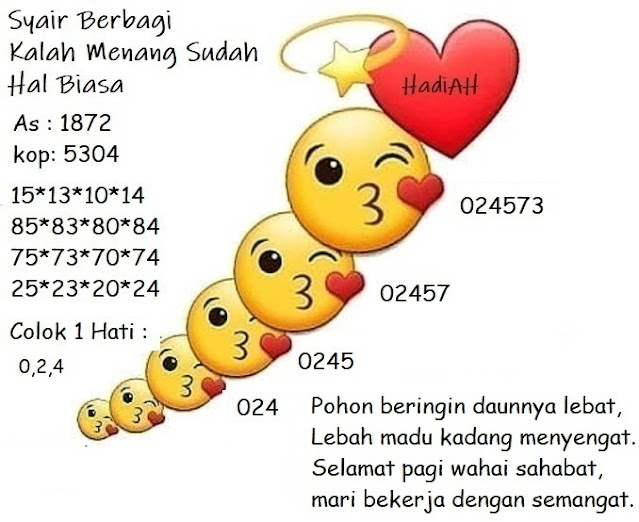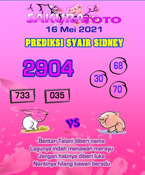Oh ya, Selalu pergunakan naluri anda untuk membaca makna dari Prediksi Syair Sydney 16 Mei 2021. Janganlah membaca Prediksi Syair Sydney Terjitu dengan terlalu menggebu – gebu dari makna syair yang telah kami berikan. Pahamilah dengan pelan hingga mengerti maksud dari syair yang paling banyak dicari oleh pemain judi togel online ini. Setelah kalian memahami prediksi Syair Sydney ini Kemenangan dengan lebih mudah bisa kalian raih.