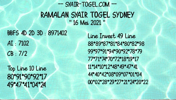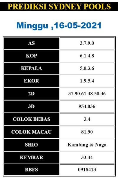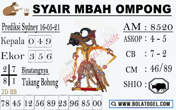 Jenis Permainan Togel Online ini sangat membutuhkan kesadaran dan kepekaan dalam membaca dan juga mamprediksi suatu angka togel. Terutama Syair 16 Mei 2021, dalam forum syair sydney hari ini, kalian akan menemukan kode syair sydney hari ini, nah dalam prediksi togel sydney hari ini, kalian akan mendapatkan syair togel sydney terlengkap hanya di JON4D Sebagai Situs Judi Togel Online terbesar di Indoneisa. Dimana kami munculkan Syair Sydney terjitu agar memudahkan pemain dalam memahami angka keluaran di periode selanjutnya.