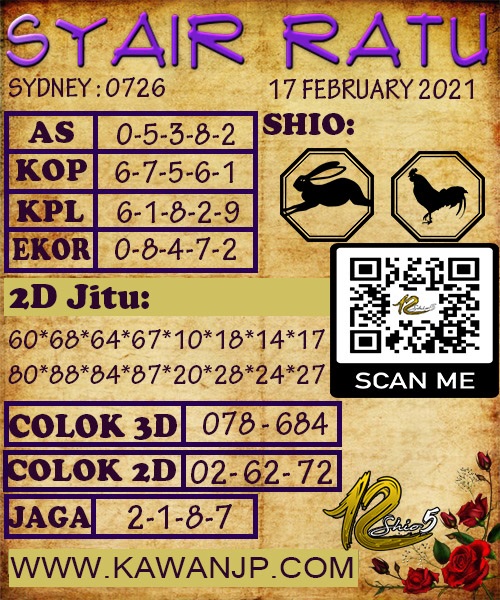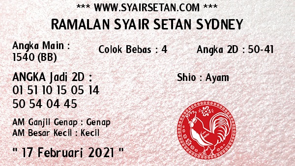 Jenis Permainan Togel Online ini sangat membutuhkan kesadaran dan kepekaan dalam membaca dan juga mamprediksi suatu angka togel. Terutama Syair 17 Februari 2021, dalam forum syair sydney hari ini, kalian akan menemukan kode syair sydney hari ini, nah dalam prediksi togel sydney hari ini, kalian akan mendapatkan syair togel sydney terlengkap hanya di JON4D Sebagai Situs Judi Togel Online terbesar di Indoneisa. Dimana kami munculkan Syair Sydney terjitu agar memudahkan pemain dalam memahami angka keluaran di periode selanjutnya.