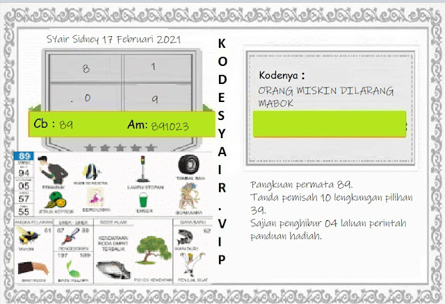 Oh ya, Selalu pergunakan naluri anda untuk membaca makna dari Prediksi Syair Sydney 17 Februari 2021. Janganlah membaca Prediksi Syair Sydney Terjitu dengan terlalu menggebu – gebu dari makna syair yang telah kami berikan. Pahamilah dengan pelan hingga mengerti maksud dari syair yang paling banyak dicari oleh pemain judi togel online ini. Setelah kalian memahami prediksi Syair Sydney ini Kemenangan dengan lebih mudah bisa kalian raih.