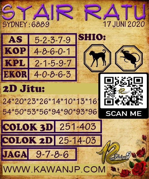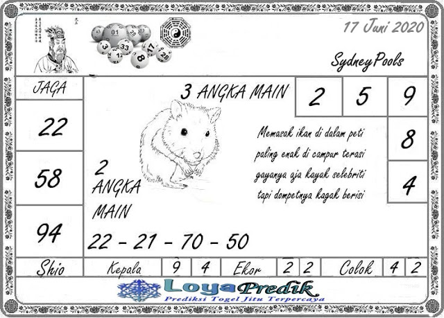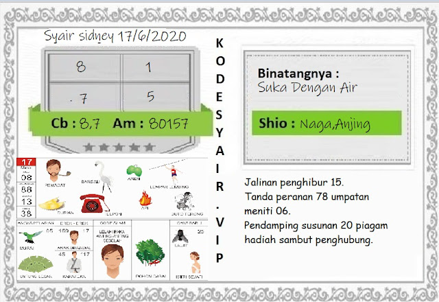 Jenis Permainan Togel Online ini sangat membutuhkan kesadaran dan kepekaan dalam membaca dan juga mamprediksi suatu angka togel. Terutama Syair Sydney 17 Juni 2020, dalam forum syair sydney hari ini, kalian akan menemukan kode syair sydney hari ini, nah dalam prediksi togel sydney hari ini, kalian akan mendapatkan syair togel sydney terlengkap hanya di JON4D Sebagai Situs Judi Togel Online terbesar di Indoneisa. Dimana kami munculkan Syair Sydney terjitu agar memudahkan pemain dalam memahami angka keluaran di periode selanjutnya.