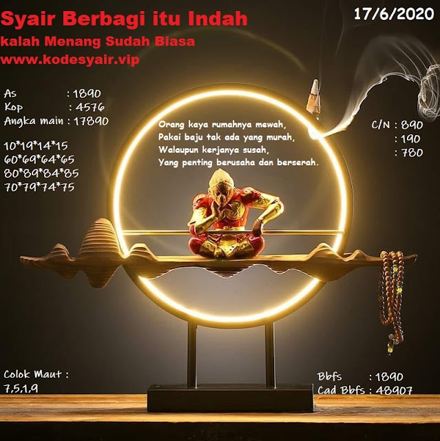 Oh ya, Selalu pergunakan naluri anda untuk membaca makna dari Prediksi Syair Sydney 17 Juni 2020. Janganlah membaca Prediksi Syair Sydney Terjitu dengan terlalu menggebu – gebu dari makna syair yang telah kami berikan. Pahamilah dengan pelan hingga mengerti maksud dari syair yang paling banyak dicari oleh pemain judi togel online ini. Setelah kalian memahami prediksi Syair Sydney ini Kemenangan dengan lebih mudah bisa kalian raih.