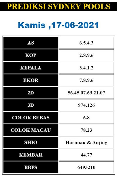 Jenis Permainan Togel Online ini sangat membutuhkan kesadaran dan kepekaan dalam membaca dan juga mamprediksi suatu angka togel. Terutama Syair 17 Juni 2021, dalam forum syair sydney hari ini, kalian akan menemukan kode syair sydney hari ini, nah dalam prediksi togel sydney hari ini, kalian akan mendapatkan syair togel sydney terlengkap hanya di JON4D Sebagai Situs Judi Togel Online terbesar di Indoneisa. Dimana kami munculkan Syair Sydney terjitu agar memudahkan pemain dalam memahami angka keluaran di periode selanjutnya.