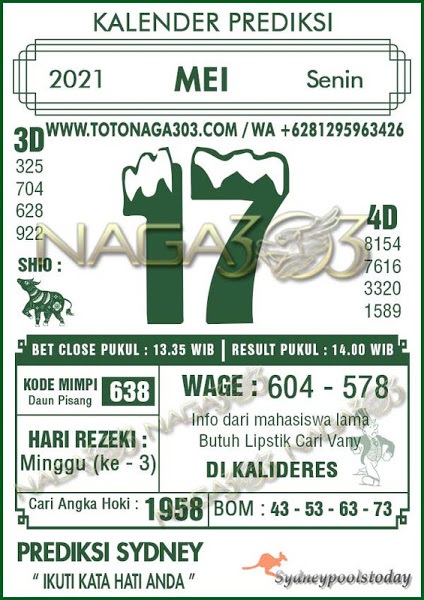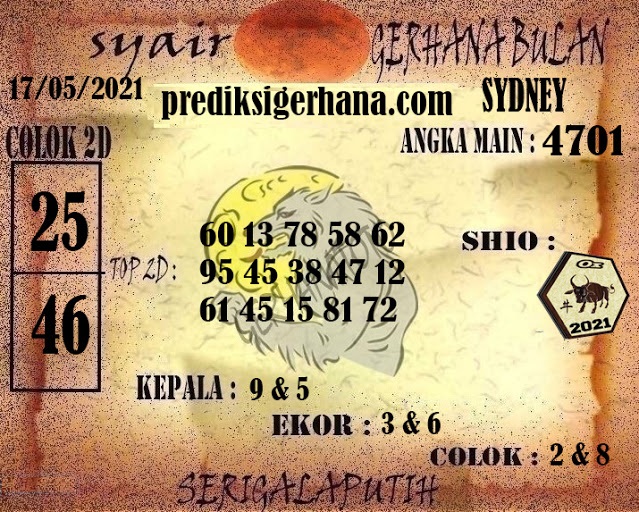 Syair Sdy Senin 17 Mei 2021