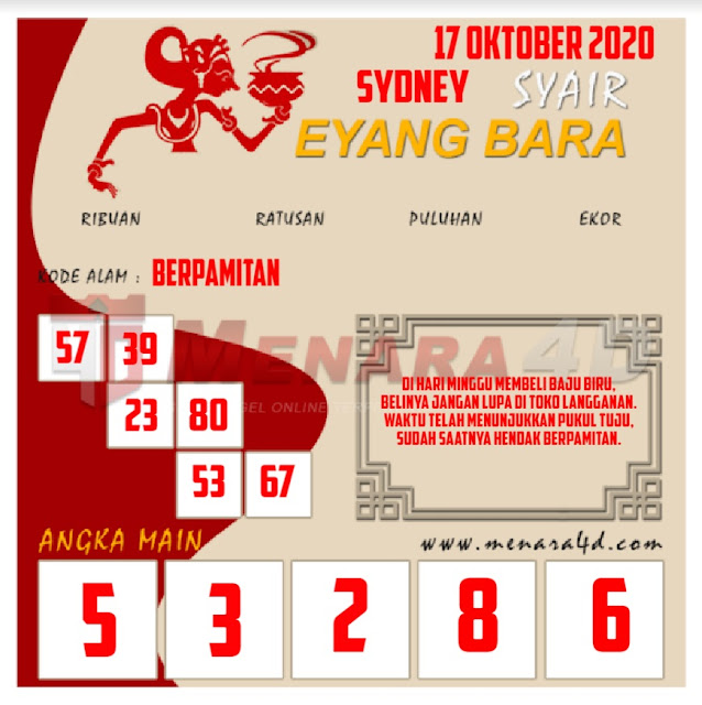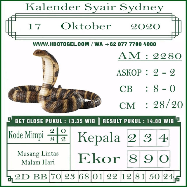 Jenis Permainan Togel Online ini sangat membutuhkan kesadaran dan kepekaan dalam membaca dan juga mamprediksi suatu angka togel. Terutama Syair 17 October 2020, dalam forum syair sydney hari ini, kalian akan menemukan kode syair sydney hari ini, nah dalam prediksi togel sydney hari ini, kalian akan mendapatkan syair togel sydney terlengkap hanya di JON4D Sebagai Situs Judi Togel Online terbesar di Indoneisa. Dimana kami munculkan Syair Sydney terjitu agar memudahkan pemain dalam memahami angka keluaran di periode selanjutnya.