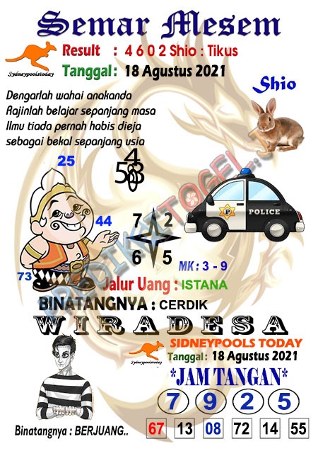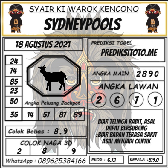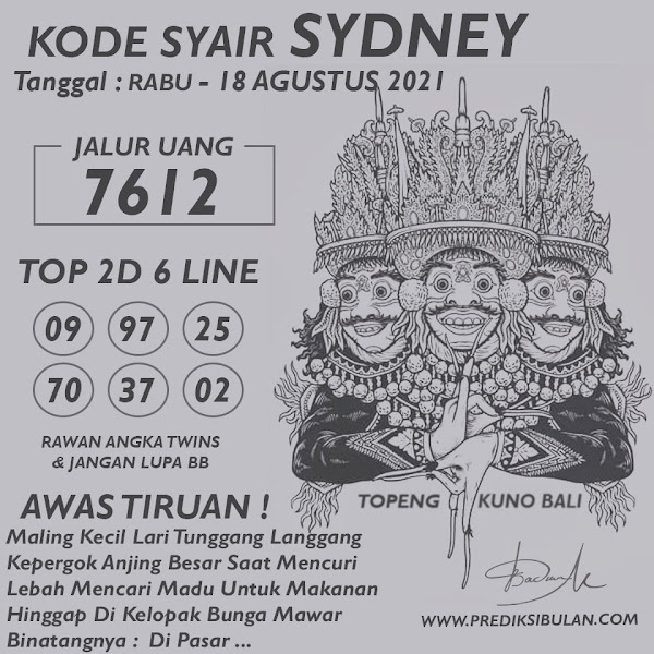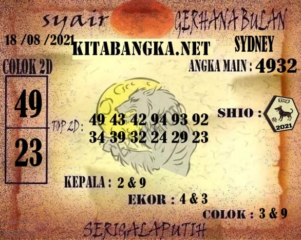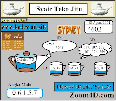Oh ya, Selalu pergunakan naluri anda untuk membaca makna dari Prediksi Syair Sydney 18 Agustus 2021. Janganlah membaca Prediksi Syair Sydney Terjitu dengan terlalu menggebu – gebu dari makna syair yang telah kami berikan. Pahamilah dengan pelan hingga mengerti maksud dari syair yang paling banyak dicari oleh pemain judi togel online ini. Setelah kalian memahami prediksi Syair Sydney ini Kemenangan dengan lebih mudah bisa kalian raih.