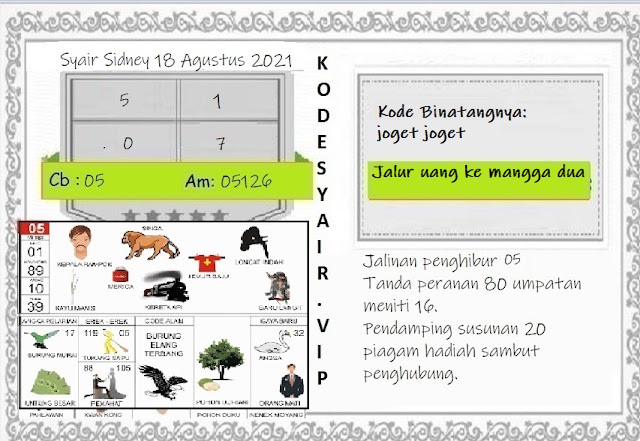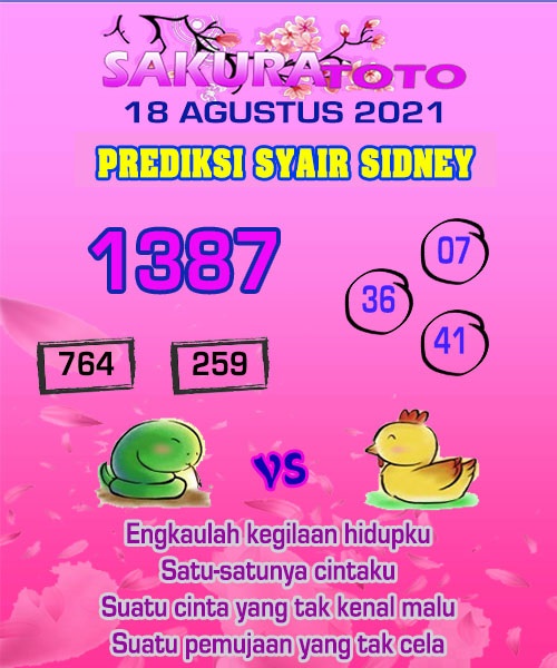 Jenis Permainan Togel Online ini sangat membutuhkan kesadaran dan kepekaan dalam membaca dan juga mamprediksi suatu angka togel. Terutama Syair 18 Agustus 2021, dalam forum syair sydney hari ini, kalian akan menemukan kode syair sydney hari ini, nah dalam prediksi togel sydney hari ini, kalian akan mendapatkan syair togel sydney terlengkap hanya di JON4D Sebagai Situs Judi Togel Online terbesar di Indoneisa. Dimana kami munculkan Syair Sydney terjitu agar memudahkan pemain dalam memahami angka keluaran di periode selanjutnya.