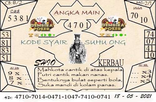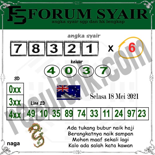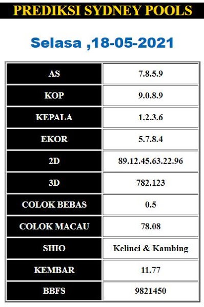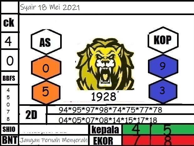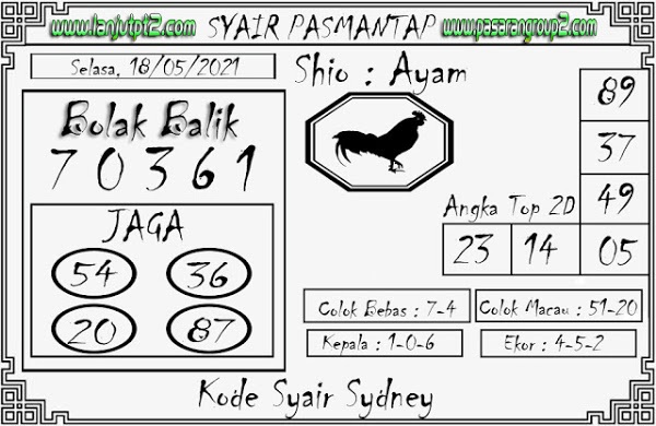 Jenis Permainan Togel Online ini sangat membutuhkan kesadaran dan kepekaan dalam membaca dan juga mamprediksi suatu angka togel. Terutama Syair 18 Mei 2021, dalam forum syair sydney hari ini, kalian akan menemukan kode syair sydney hari ini, nah dalam prediksi togel sydney hari ini, kalian akan mendapatkan syair togel sydney terlengkap hanya di JON4D Sebagai Situs Judi Togel Online terbesar di Indoneisa. Dimana kami munculkan Syair Sydney terjitu agar memudahkan pemain dalam memahami angka keluaran di periode selanjutnya.