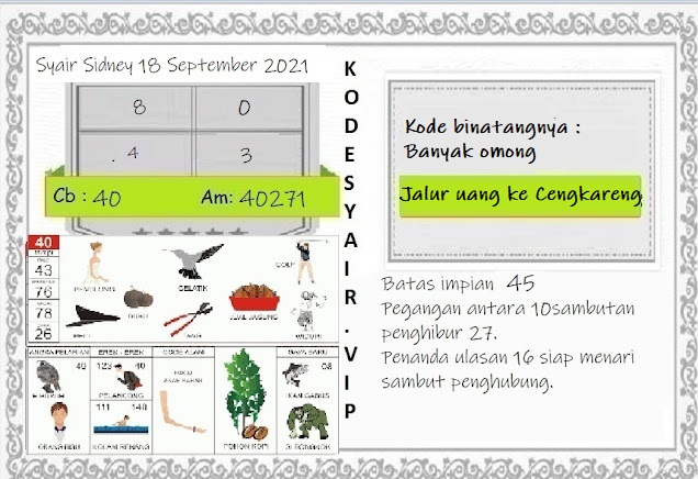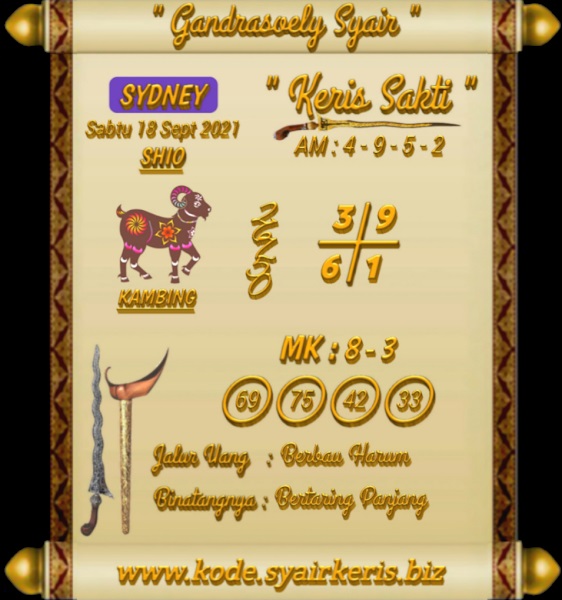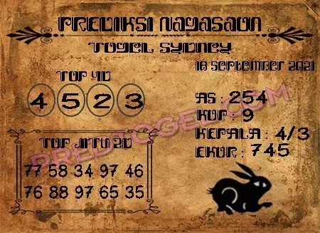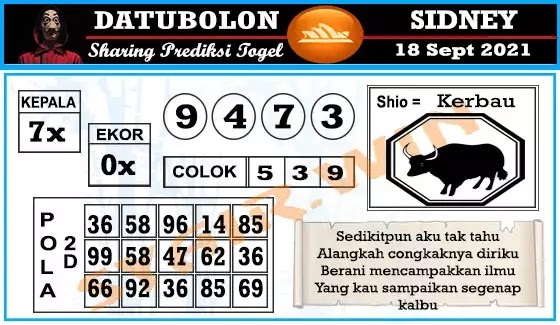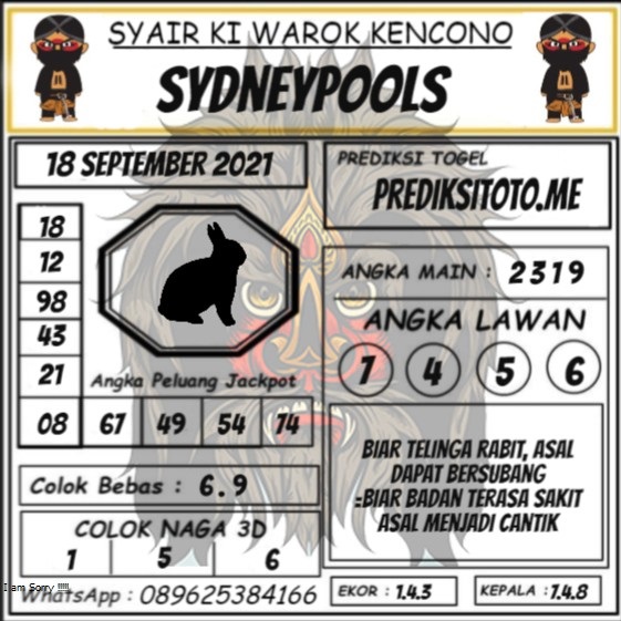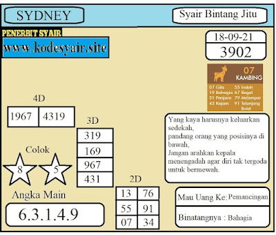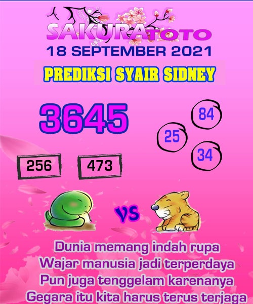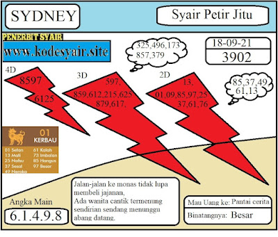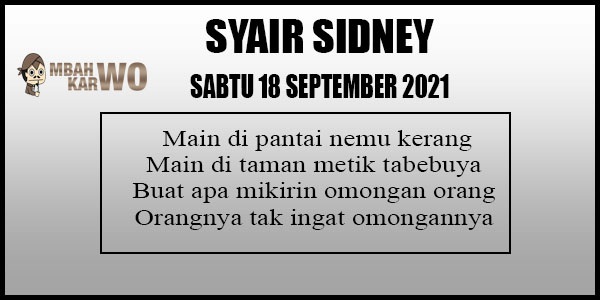 Oh ya, Selalu pergunakan naluri anda untuk membaca makna dari Prediksi Syair Sydney 18 September 2021. Janganlah membaca Prediksi Syair Sydney Terjitu dengan terlalu menggebu – gebu dari makna syair yang telah kami berikan. Pahamilah dengan pelan hingga mengerti maksud dari syair yang paling banyak dicari oleh pemain judi togel online ini. Setelah kalian memahami prediksi Syair Sydney ini Kemenangan dengan lebih mudah bisa kalian raih.