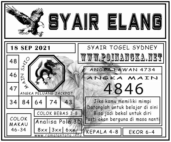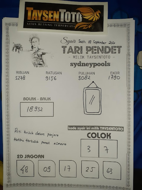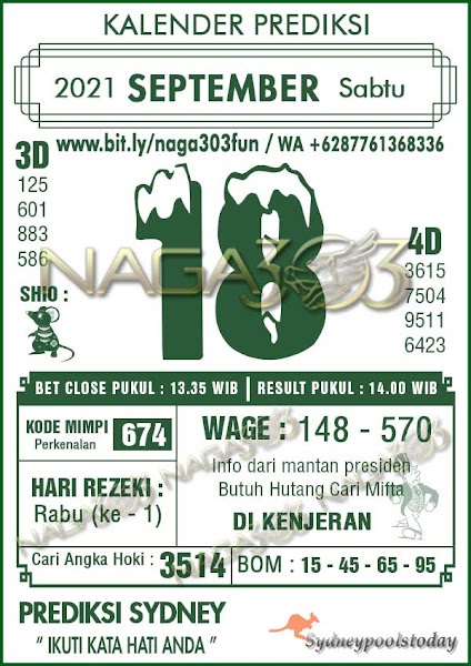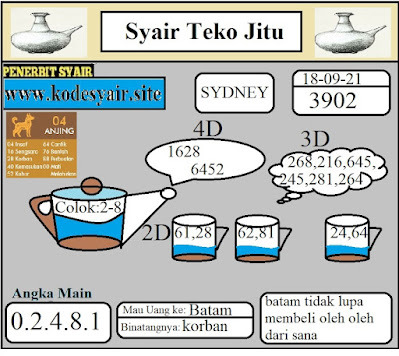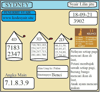 Jenis Permainan Togel Online ini sangat membutuhkan kesadaran dan kepekaan dalam membaca dan juga mamprediksi suatu angka togel. Terutama Syair 18 September 2021, dalam forum syair sydney hari ini, kalian akan menemukan kode syair sydney hari ini, nah dalam prediksi togel sydney hari ini, kalian akan mendapatkan syair togel sydney terlengkap hanya di JON4D Sebagai Situs Judi Togel Online terbesar di Indoneisa. Dimana kami munculkan Syair Sydney terjitu agar memudahkan pemain dalam memahami angka keluaran di periode selanjutnya.