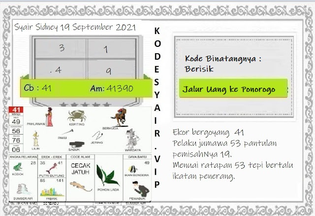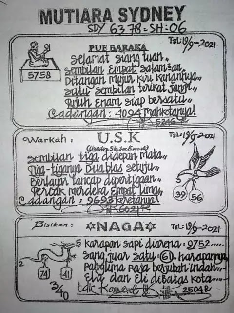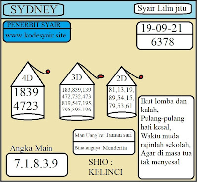 Jenis Permainan Togel Online ini sangat membutuhkan kesadaran dan kepekaan dalam membaca dan juga mamprediksi suatu angka togel. Terutama Syair 19 September 2021, dalam forum syair sydney hari ini, kalian akan menemukan kode syair sydney hari ini, nah dalam prediksi togel sydney hari ini, kalian akan mendapatkan syair togel sydney terlengkap hanya di JON4D Sebagai Situs Judi Togel Online terbesar di Indoneisa. Dimana kami munculkan Syair Sydney terjitu agar memudahkan pemain dalam memahami angka keluaran di periode selanjutnya.
