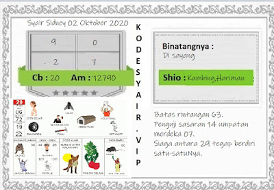Oh ya, Selalu pergunakan naluri anda untuk membaca makna dari Prediksi Syair Sydney 2 October 2020. Janganlah membaca Prediksi Syair Sydney Terjitu dengan terlalu menggebu – gebu dari makna syair yang telah kami berikan. Pahamilah dengan pelan hingga mengerti maksud dari syair yang paling banyak dicari oleh pemain judi togel online ini. Setelah kalian memahami prediksi Syair Sydney ini Kemenangan dengan lebih mudah bisa kalian raih.