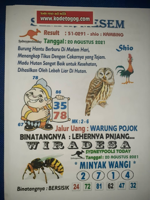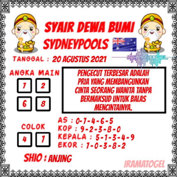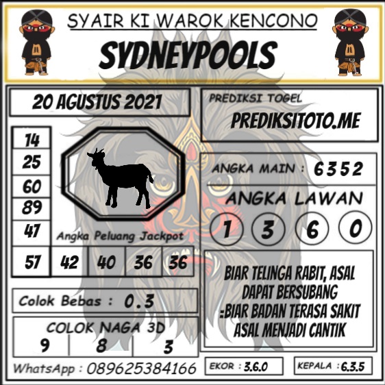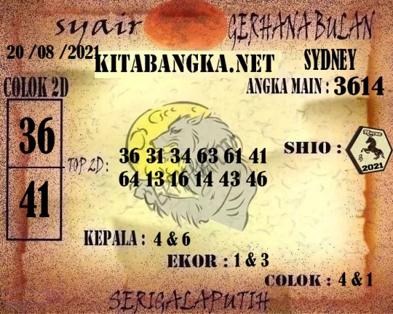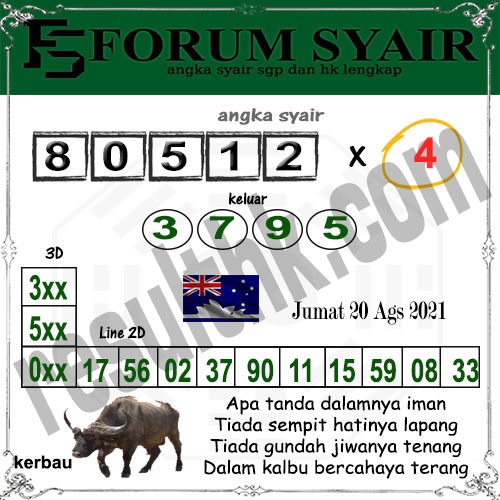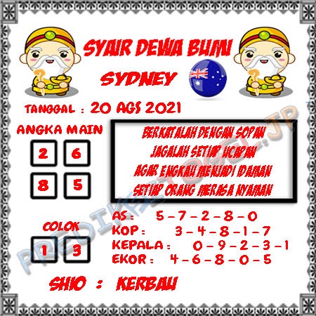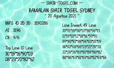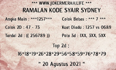 Jenis Permainan Togel Online ini sangat membutuhkan kesadaran dan kepekaan dalam membaca dan juga mamprediksi suatu angka togel. Terutama Syair 20 Agustus 2021, dalam forum syair sydney hari ini, kalian akan menemukan kode syair sydney hari ini, nah dalam prediksi togel sydney hari ini, kalian akan mendapatkan syair togel sydney terlengkap hanya di JON4D Sebagai Situs Judi Togel Online terbesar di Indoneisa. Dimana kami munculkan Syair Sydney terjitu agar memudahkan pemain dalam memahami angka keluaran di periode selanjutnya.