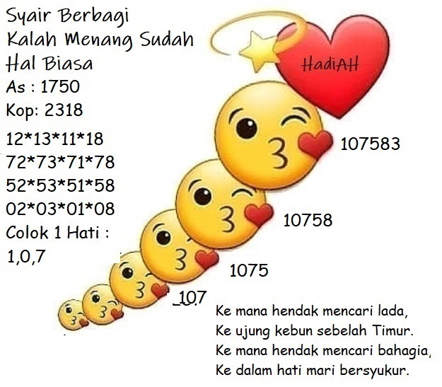 Oh ya, Selalu pergunakan naluri anda untuk membaca makna dari Prediksi Syair Sydney 20 Agustus 2021. Janganlah membaca Prediksi Syair Sydney Terjitu dengan terlalu menggebu – gebu dari makna syair yang telah kami berikan. Pahamilah dengan pelan hingga mengerti maksud dari syair yang paling banyak dicari oleh pemain judi togel online ini. Setelah kalian memahami prediksi Syair Sydney ini Kemenangan dengan lebih mudah bisa kalian raih.