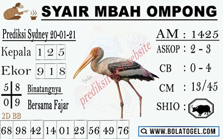 Jenis Permainan Togel Online ini sangat membutuhkan kesadaran dan kepekaan dalam membaca dan juga mamprediksi suatu angka togel. Terutama Syair 20 Januari 2021, dalam forum syair sydney hari ini, kalian akan menemukan kode syair sydney hari ini, nah dalam prediksi togel sydney hari ini, kalian akan mendapatkan syair togel sydney terlengkap hanya di JON4D Sebagai Situs Judi Togel Online terbesar di Indoneisa. Dimana kami munculkan Syair Sydney terjitu agar memudahkan pemain dalam memahami angka keluaran di periode selanjutnya.