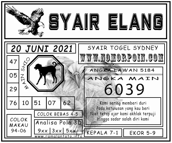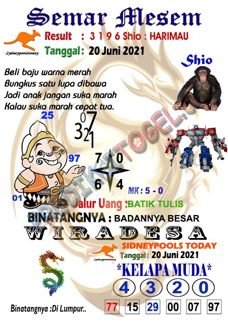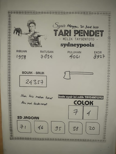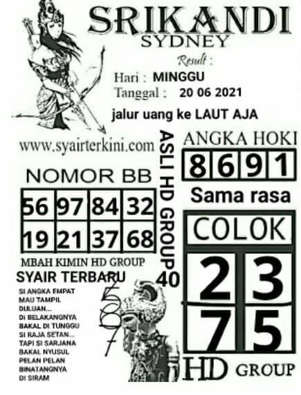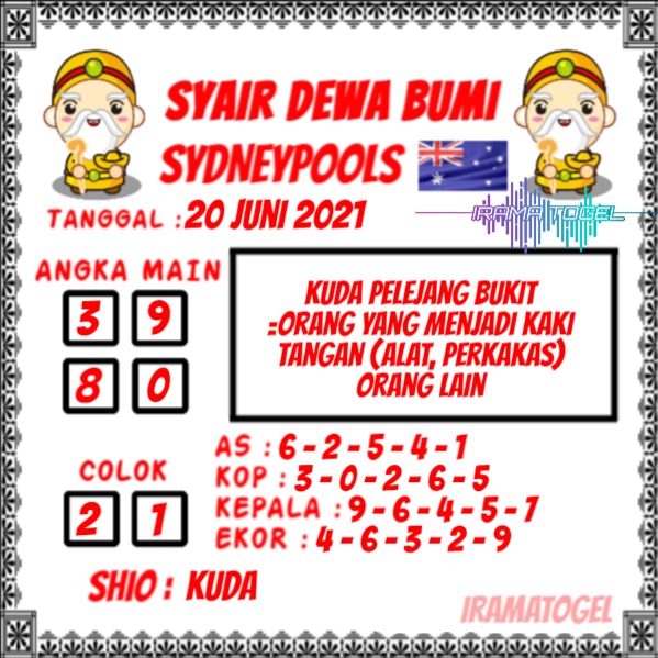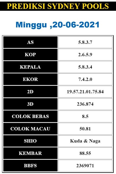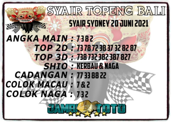 Jenis Permainan Togel Online ini sangat membutuhkan kesadaran dan kepekaan dalam membaca dan juga mamprediksi suatu angka togel. Terutama Syair 20 Juni 2021, dalam forum syair sydney hari ini, kalian akan menemukan kode syair sydney hari ini, nah dalam prediksi togel sydney hari ini, kalian akan mendapatkan syair togel sydney terlengkap hanya di JON4D Sebagai Situs Judi Togel Online terbesar di Indoneisa. Dimana kami munculkan Syair Sydney terjitu agar memudahkan pemain dalam memahami angka keluaran di periode selanjutnya.