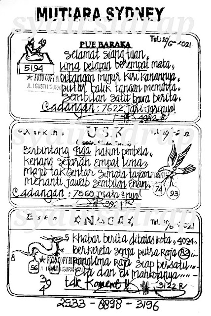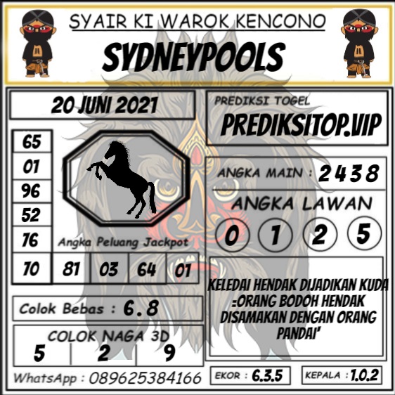 Oh ya, Selalu pergunakan naluri anda untuk membaca makna dari Prediksi Syair Sydney 20 Juni 2021. Janganlah membaca Prediksi Syair Sydney Terjitu dengan terlalu menggebu – gebu dari makna syair yang telah kami berikan. Pahamilah dengan pelan hingga mengerti maksud dari syair yang paling banyak dicari oleh pemain judi togel online ini. Setelah kalian memahami prediksi Syair Sydney ini Kemenangan dengan lebih mudah bisa kalian raih.