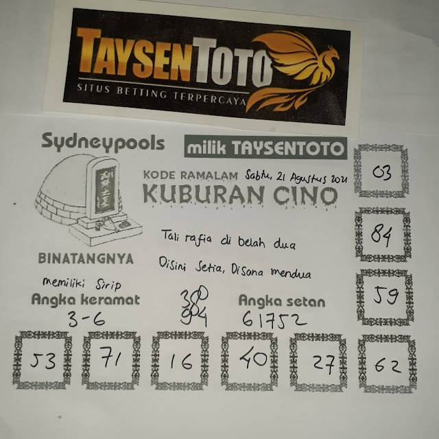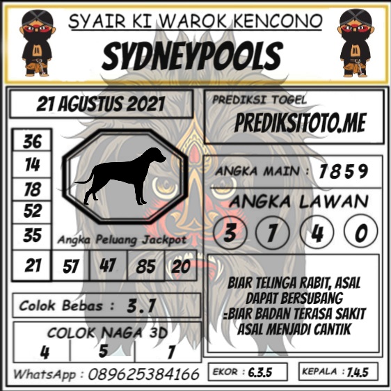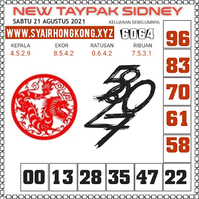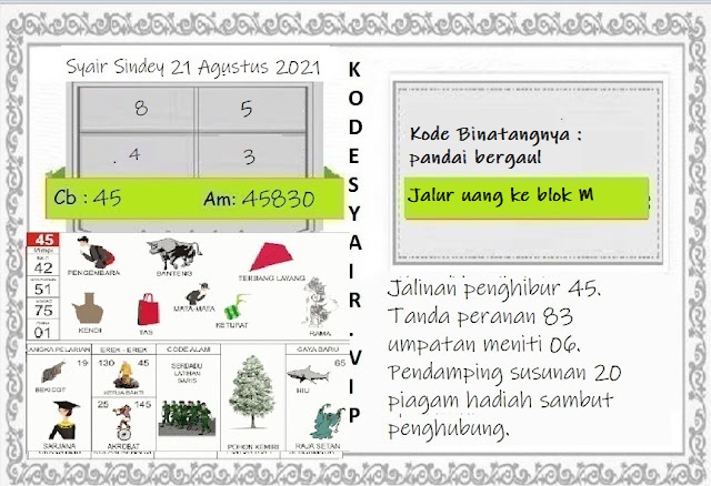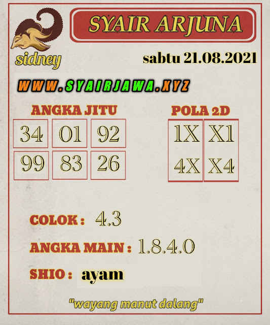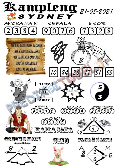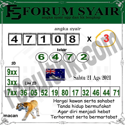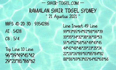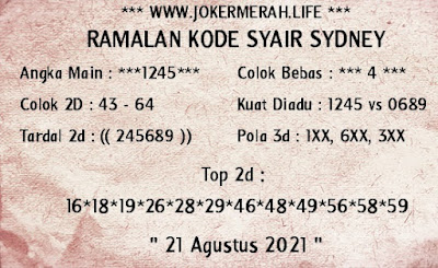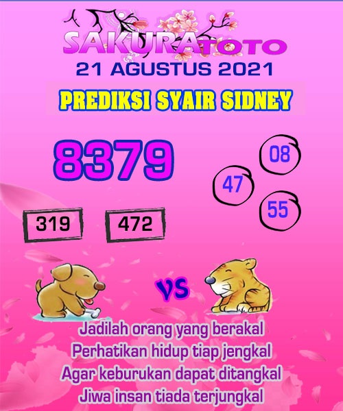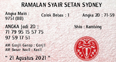 Jenis Permainan Togel Online ini sangat membutuhkan kesadaran dan kepekaan dalam membaca dan juga mamprediksi suatu angka togel. Terutama Syair 21 Agustus 2021, dalam forum syair sydney hari ini, kalian akan menemukan kode syair sydney hari ini, nah dalam prediksi togel sydney hari ini, kalian akan mendapatkan syair togel sydney terlengkap hanya di JON4D Sebagai Situs Judi Togel Online terbesar di Indoneisa. Dimana kami munculkan Syair Sydney terjitu agar memudahkan pemain dalam memahami angka keluaran di periode selanjutnya.