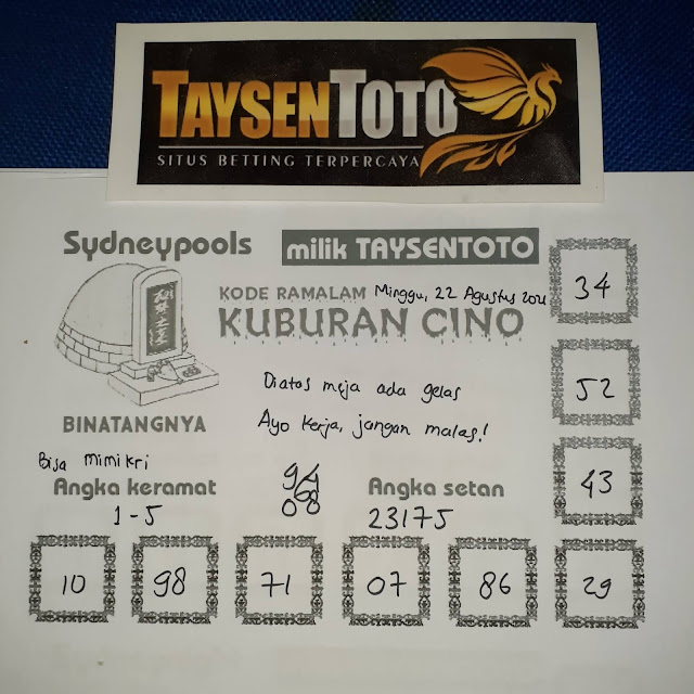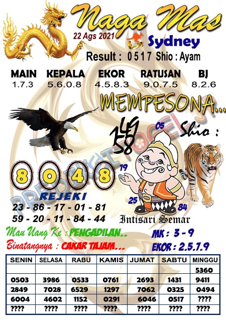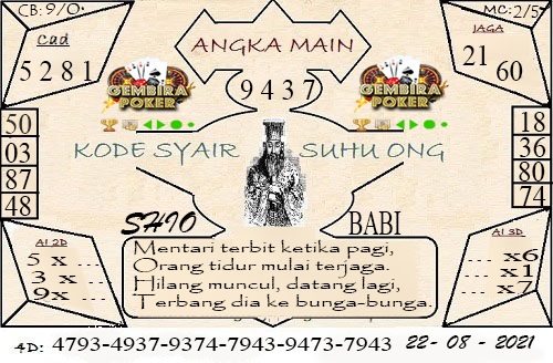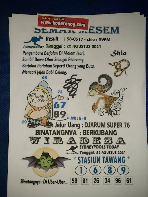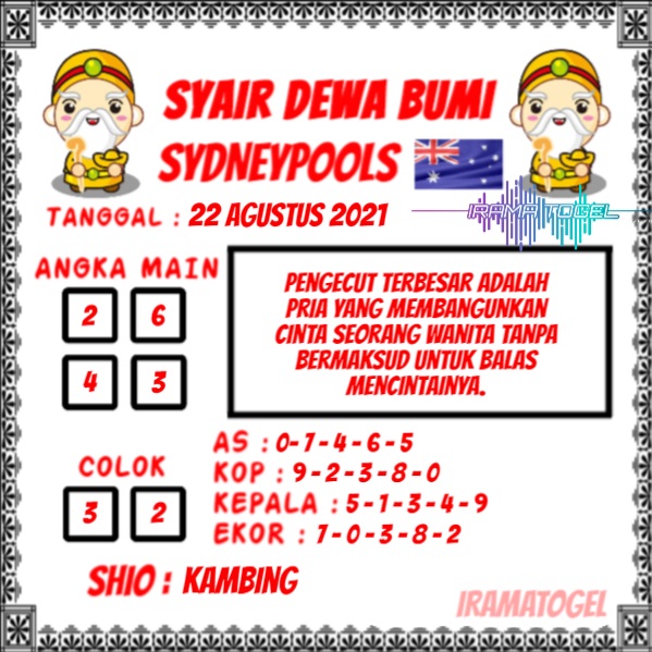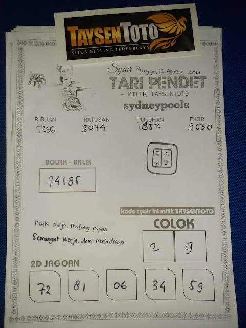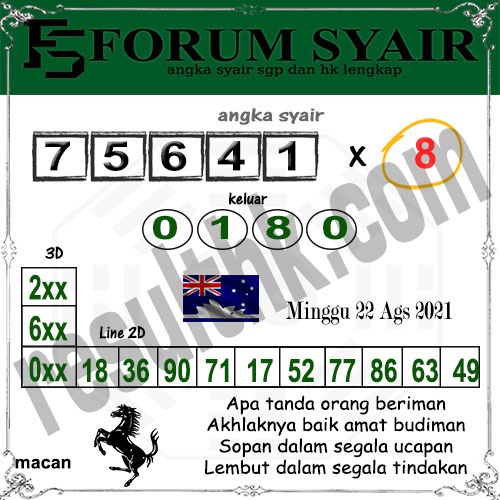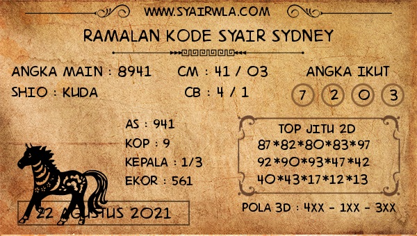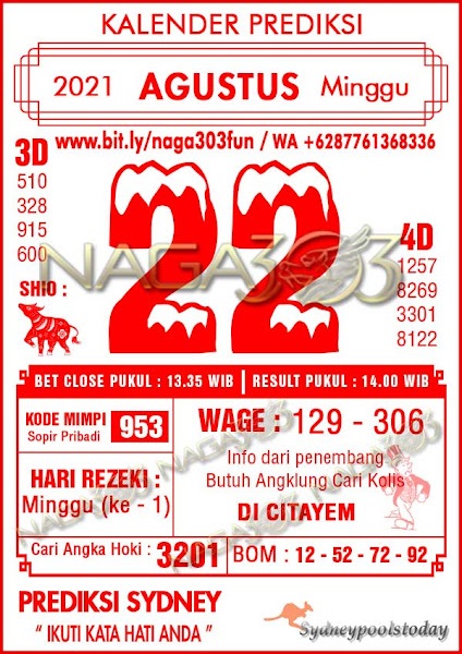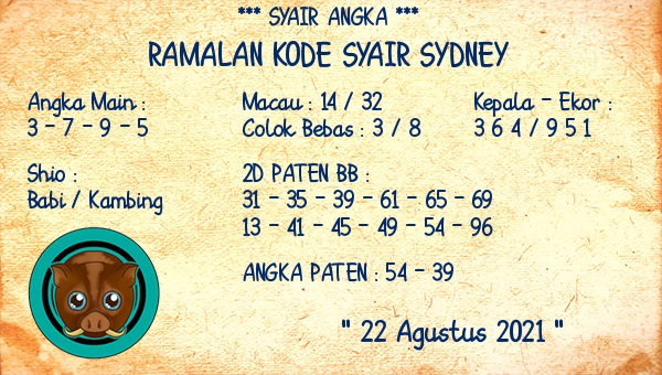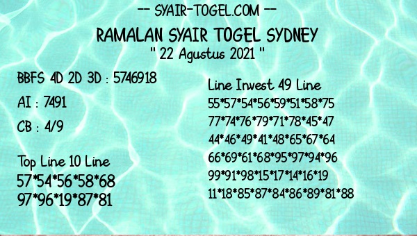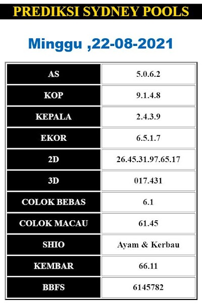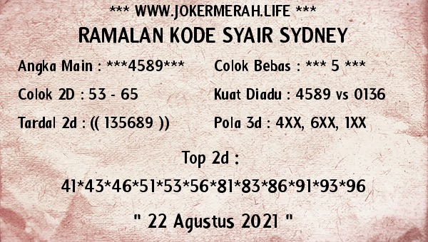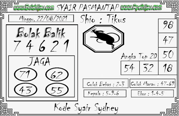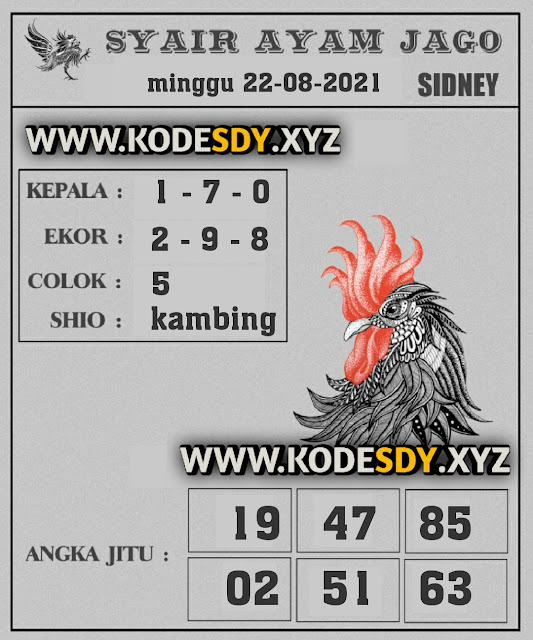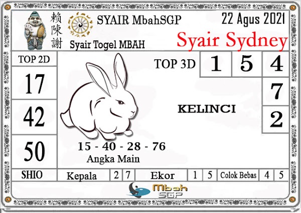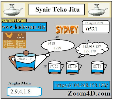 Jenis Permainan Togel Online ini sangat membutuhkan kesadaran dan kepekaan dalam membaca dan juga mamprediksi suatu angka togel. Terutama Syair 22 Agustus 2021, dalam forum syair sydney hari ini, kalian akan menemukan kode syair sydney hari ini, nah dalam prediksi togel sydney hari ini, kalian akan mendapatkan syair togel sydney terlengkap hanya di JON4D Sebagai Situs Judi Togel Online terbesar di Indoneisa. Dimana kami munculkan Syair Sydney terjitu agar memudahkan pemain dalam memahami angka keluaran di periode selanjutnya.