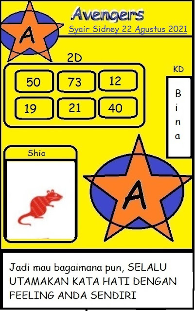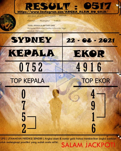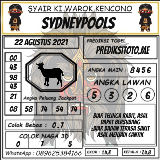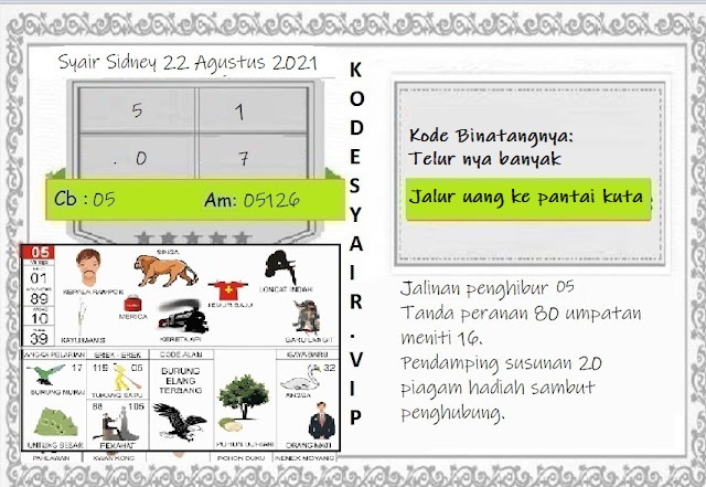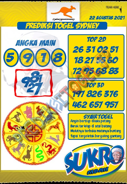 Oh ya, Selalu pergunakan naluri anda untuk membaca makna dari Prediksi Syair Sydney 22 Agustus 2021. Janganlah membaca Prediksi Syair Sydney Terjitu dengan terlalu menggebu – gebu dari makna syair yang telah kami berikan. Pahamilah dengan pelan hingga mengerti maksud dari syair yang paling banyak dicari oleh pemain judi togel online ini. Setelah kalian memahami prediksi Syair Sydney ini Kemenangan dengan lebih mudah bisa kalian raih.