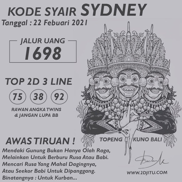JON4D – Syair Togel Sydney 22 Februari 2021, Prediksi Syair Sydney 22 Februari 2021, Kode Syair Sydney, Prediksi Syair Sdy Hari ini, Prediksi Syair Sdy Jitu, Keluaran Togel Sydney Hari ini, Syair Sydney.