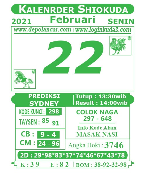 Jenis Permainan Togel Online ini sangat membutuhkan kesadaran dan kepekaan dalam membaca dan juga mamprediksi suatu angka togel. Terutama Syair 22 Februari 2021, dalam forum syair sydney hari ini, kalian akan menemukan kode syair sydney hari ini, nah dalam prediksi togel sydney hari ini, kalian akan mendapatkan syair togel sydney terlengkap hanya di JON4D Sebagai Situs Judi Togel Online terbesar di Indoneisa. Dimana kami munculkan Syair Sydney terjitu agar memudahkan pemain dalam memahami angka keluaran di periode selanjutnya.