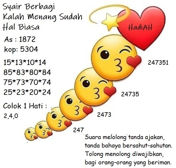 Oh ya, Selalu pergunakan naluri anda untuk membaca makna dari Prediksi Syair Sydney 22 Februari 2021. Janganlah membaca Prediksi Syair Sydney Terjitu dengan terlalu menggebu – gebu dari makna syair yang telah kami berikan. Pahamilah dengan pelan hingga mengerti maksud dari syair yang paling banyak dicari oleh pemain judi togel online ini. Setelah kalian memahami prediksi Syair Sydney ini Kemenangan dengan lebih mudah bisa kalian raih.