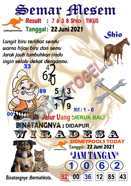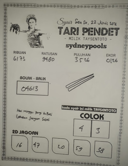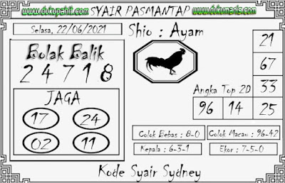 Oh ya, Selalu pergunakan naluri anda untuk membaca makna dari Prediksi Syair Sydney 22 Juni 2021. Janganlah membaca Prediksi Syair Sydney Terjitu dengan terlalu menggebu – gebu dari makna syair yang telah kami berikan. Pahamilah dengan pelan hingga mengerti maksud dari syair yang paling banyak dicari oleh pemain judi togel online ini. Setelah kalian memahami prediksi Syair Sydney ini Kemenangan dengan lebih mudah bisa kalian raih.