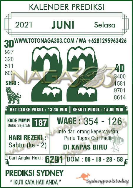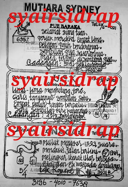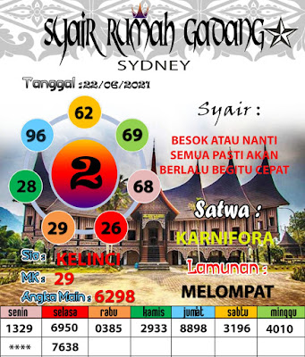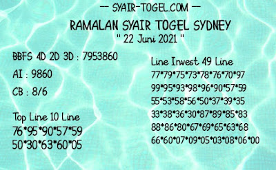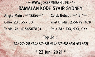 Jenis Permainan Togel Online ini sangat membutuhkan kesadaran dan kepekaan dalam membaca dan juga mamprediksi suatu angka togel. Terutama Syair 22 Juni 2021, dalam forum syair sydney hari ini, kalian akan menemukan kode syair sydney hari ini, nah dalam prediksi togel sydney hari ini, kalian akan mendapatkan syair togel sydney terlengkap hanya di JON4D Sebagai Situs Judi Togel Online terbesar di Indoneisa. Dimana kami munculkan Syair Sydney terjitu agar memudahkan pemain dalam memahami angka keluaran di periode selanjutnya.