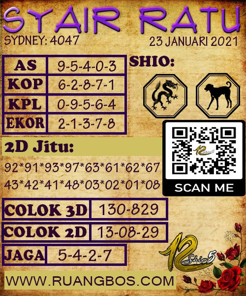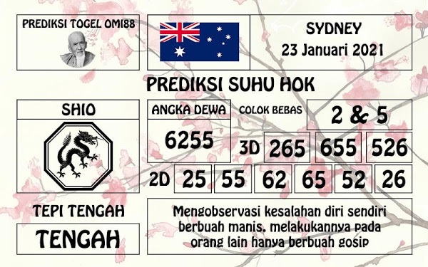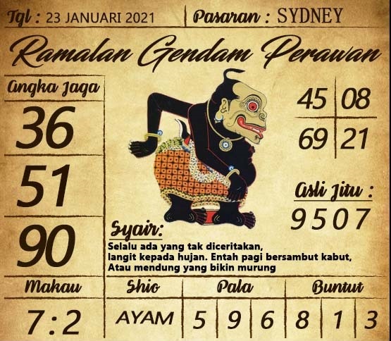 Jenis Permainan Togel Online ini sangat membutuhkan kesadaran dan kepekaan dalam membaca dan juga mamprediksi suatu angka togel. Terutama Syair 23 Januari 2021, dalam forum syair sydney hari ini, kalian akan menemukan kode syair sydney hari ini, nah dalam prediksi togel sydney hari ini, kalian akan mendapatkan syair togel sydney terlengkap hanya di JON4D Sebagai Situs Judi Togel Online terbesar di Indoneisa. Dimana kami munculkan Syair Sydney terjitu agar memudahkan pemain dalam memahami angka keluaran di periode selanjutnya.