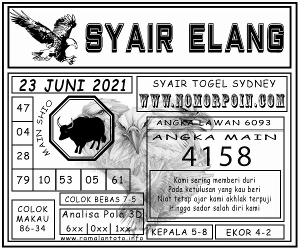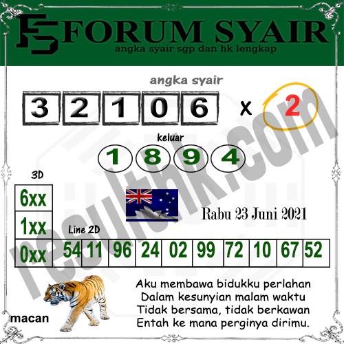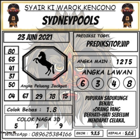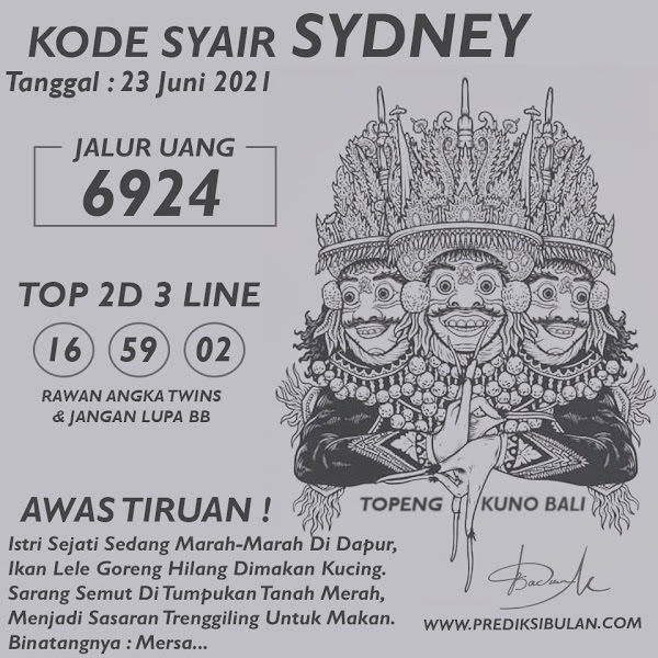 Jenis Permainan Togel Online ini sangat membutuhkan kesadaran dan kepekaan dalam membaca dan juga mamprediksi suatu angka togel. Terutama Syair 23 Juni 2021, dalam forum syair sydney hari ini, kalian akan menemukan kode syair sydney hari ini, nah dalam prediksi togel sydney hari ini, kalian akan mendapatkan syair togel sydney terlengkap hanya di JON4D Sebagai Situs Judi Togel Online terbesar di Indoneisa. Dimana kami munculkan Syair Sydney terjitu agar memudahkan pemain dalam memahami angka keluaran di periode selanjutnya.
