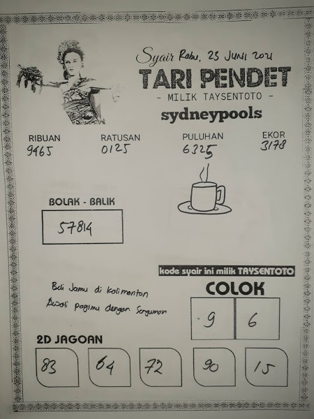Daftar togel online terpercaya di JON4D untuk mendapatkan sebuah kode syair togel terjitu setiap harinya. Pastikan saja Anda tidak akan pernah melewatkan semua syair yang kami berikan ini. Syair Togel Sydney ini adalah yang paling banyak dicari oleh para pemain togel. Untuk itu tidak salah lagi jika anda sebagai Pemain togel online harus mengikuti secara terus menerus semua syair yang kami terbitkan di prediksi ini.