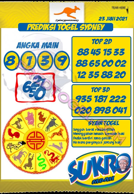 Oh ya, Selalu pergunakan naluri anda untuk membaca makna dari Prediksi Syair Sydney 23 Juni 2021. Janganlah membaca Prediksi Syair Sydney Terjitu dengan terlalu menggebu – gebu dari makna syair yang telah kami berikan. Pahamilah dengan pelan hingga mengerti maksud dari syair yang paling banyak dicari oleh pemain judi togel online ini. Setelah kalian memahami prediksi Syair Sydney ini Kemenangan dengan lebih mudah bisa kalian raih.