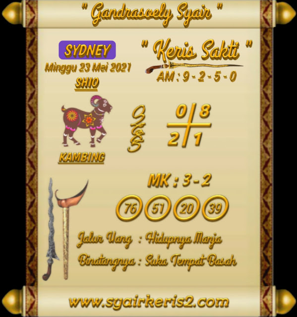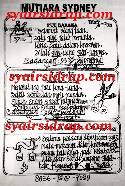 Oh ya, Selalu pergunakan naluri anda untuk membaca makna dari Prediksi Syair Sydney 23 Mei 2021. Janganlah membaca Prediksi Syair Sydney Terjitu dengan terlalu menggebu – gebu dari makna syair yang telah kami berikan. Pahamilah dengan pelan hingga mengerti maksud dari syair yang paling banyak dicari oleh pemain judi togel online ini. Setelah kalian memahami prediksi Syair Sydney ini Kemenangan dengan lebih mudah bisa kalian raih.