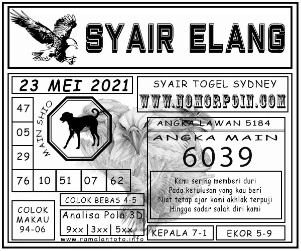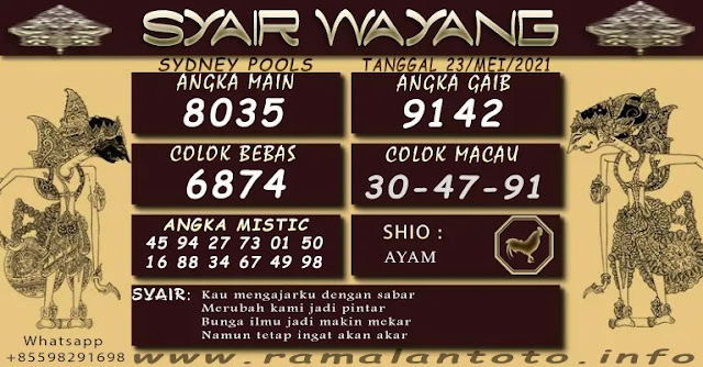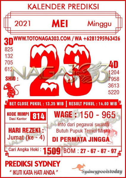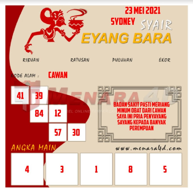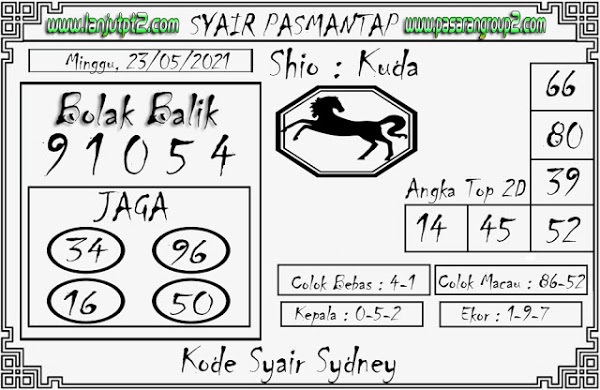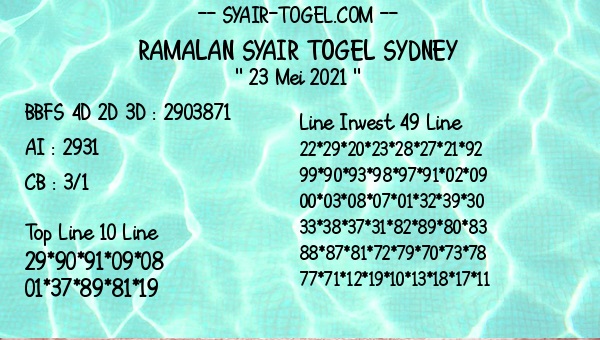 Jenis Permainan Togel Online ini sangat membutuhkan kesadaran dan kepekaan dalam membaca dan juga mamprediksi suatu angka togel. Terutama Syair 23 Mei 2021, dalam forum syair sydney hari ini, kalian akan menemukan kode syair sydney hari ini, nah dalam prediksi togel sydney hari ini, kalian akan mendapatkan syair togel sydney terlengkap hanya di JON4D Sebagai Situs Judi Togel Online terbesar di Indoneisa. Dimana kami munculkan Syair Sydney terjitu agar memudahkan pemain dalam memahami angka keluaran di periode selanjutnya.