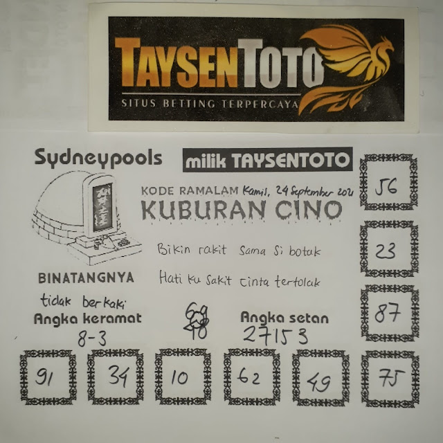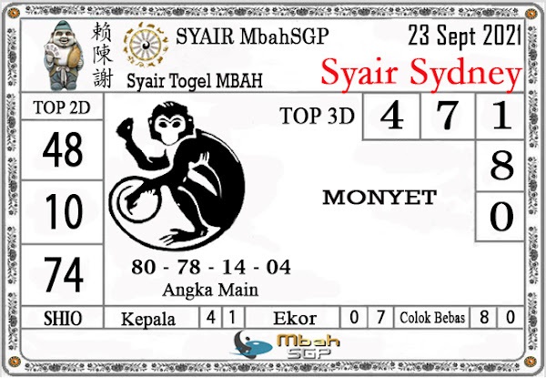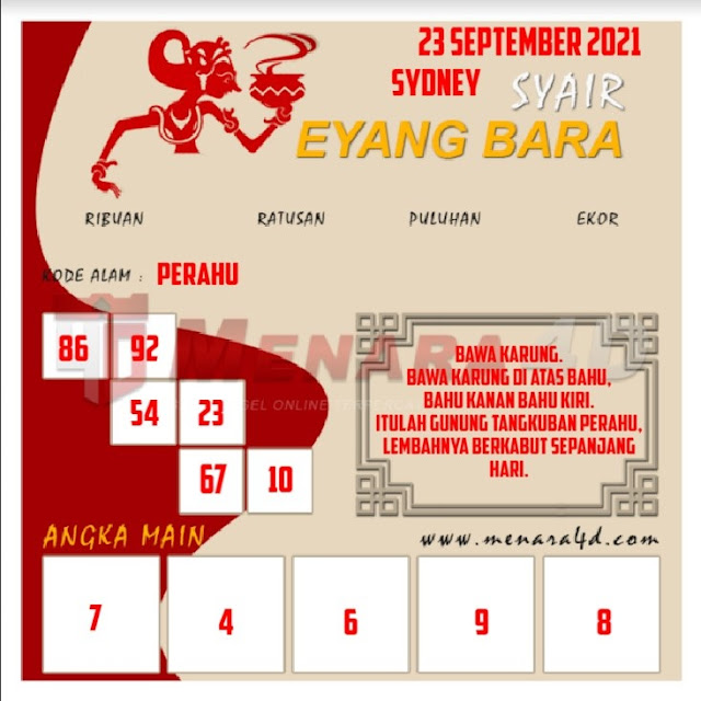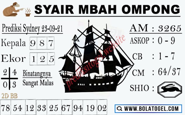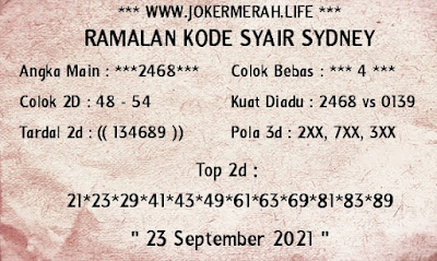 Jenis Permainan Togel Online ini sangat membutuhkan kesadaran dan kepekaan dalam membaca dan juga mamprediksi suatu angka togel. Terutama Syair 23 September 2021, dalam forum syair sydney hari ini, kalian akan menemukan kode syair sydney hari ini, nah dalam prediksi togel sydney hari ini, kalian akan mendapatkan syair togel sydney terlengkap hanya di JON4D Sebagai Situs Judi Togel Online terbesar di Indoneisa. Dimana kami munculkan Syair Sydney terjitu agar memudahkan pemain dalam memahami angka keluaran di periode selanjutnya.