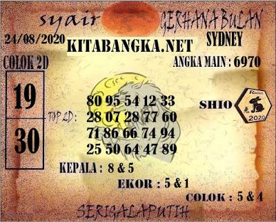 Oh ya, Selalu pergunakan naluri anda untuk membaca makna dari Prediksi Syair Sydney 24 Agustus 2020. Janganlah membaca Prediksi Syair Sydney Terjitu dengan terlalu menggebu – gebu dari makna syair yang telah kami berikan. Pahamilah dengan pelan hingga mengerti maksud dari syair yang paling banyak dicari oleh pemain judi togel online ini. Setelah kalian memahami prediksi Syair Sydney ini Kemenangan dengan lebih mudah bisa kalian raih.