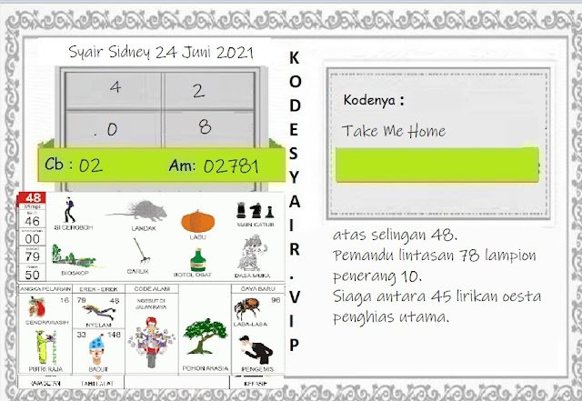 Oh ya, Selalu pergunakan naluri anda untuk membaca makna dari Prediksi Syair Sydney 24 Juni 2021. Janganlah membaca Prediksi Syair Sydney Terjitu dengan terlalu menggebu – gebu dari makna syair yang telah kami berikan. Pahamilah dengan pelan hingga mengerti maksud dari syair yang paling banyak dicari oleh pemain judi togel online ini. Setelah kalian memahami prediksi Syair Sydney ini Kemenangan dengan lebih mudah bisa kalian raih.