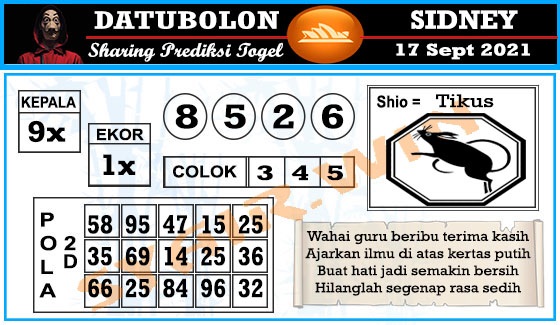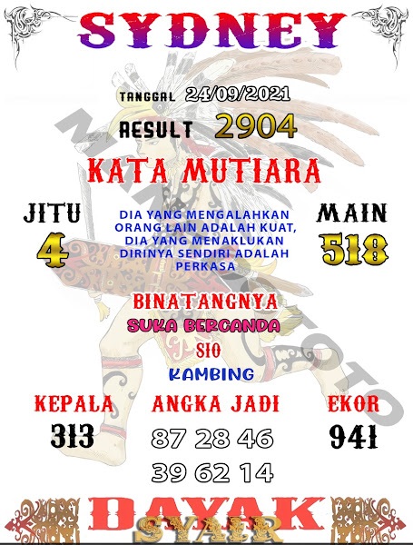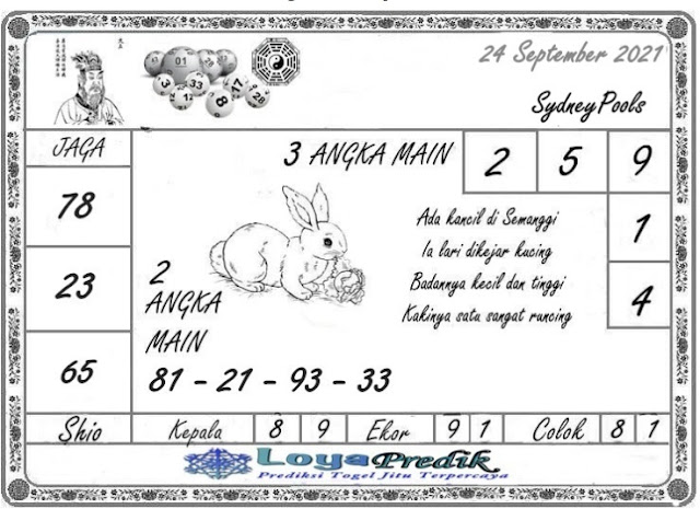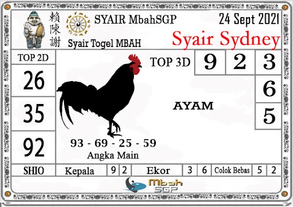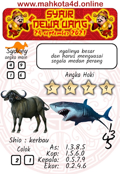 Oh ya, Selalu pergunakan naluri anda untuk membaca makna dari Prediksi Syair Sydney 24 September 2021. Janganlah membaca Prediksi Syair Sydney Terjitu dengan terlalu menggebu – gebu dari makna syair yang telah kami berikan. Pahamilah dengan pelan hingga mengerti maksud dari syair yang paling banyak dicari oleh pemain judi togel online ini. Setelah kalian memahami prediksi Syair Sydney ini Kemenangan dengan lebih mudah bisa kalian raih.