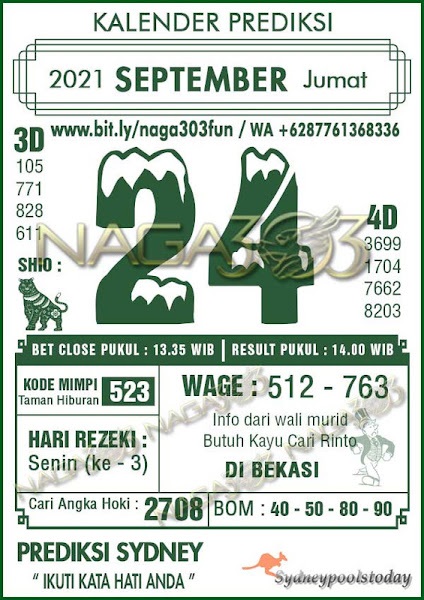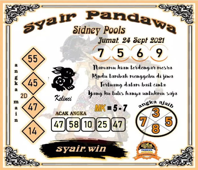 Jenis Permainan Togel Online ini sangat membutuhkan kesadaran dan kepekaan dalam membaca dan juga mamprediksi suatu angka togel. Terutama Syair 24 September 2021, dalam forum syair sydney hari ini, kalian akan menemukan kode syair sydney hari ini, nah dalam prediksi togel sydney hari ini, kalian akan mendapatkan syair togel sydney terlengkap hanya di JON4D Sebagai Situs Judi Togel Online terbesar di Indoneisa. Dimana kami munculkan Syair Sydney terjitu agar memudahkan pemain dalam memahami angka keluaran di periode selanjutnya.