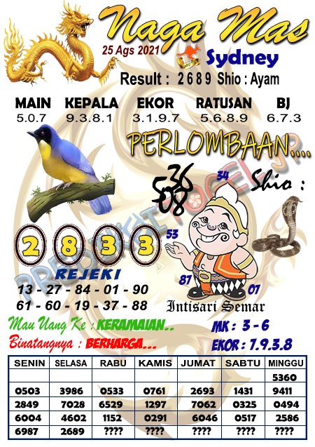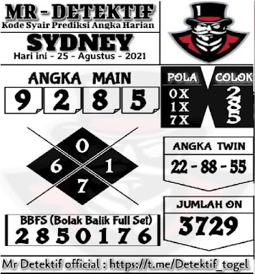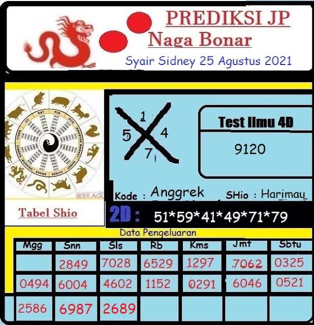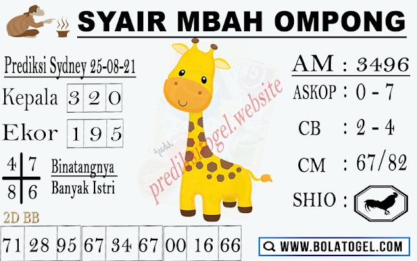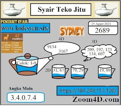 Jenis Permainan Togel Online ini sangat membutuhkan kesadaran dan kepekaan dalam membaca dan juga mamprediksi suatu angka togel. Terutama Syair 25 Agustus 2021, dalam forum syair sydney hari ini, kalian akan menemukan kode syair sydney hari ini, nah dalam prediksi togel sydney hari ini, kalian akan mendapatkan syair togel sydney terlengkap hanya di JON4D Sebagai Situs Judi Togel Online terbesar di Indoneisa. Dimana kami munculkan Syair Sydney terjitu agar memudahkan pemain dalam memahami angka keluaran di periode selanjutnya.