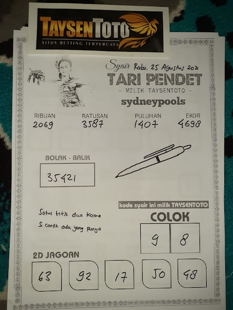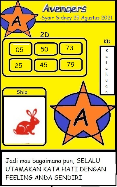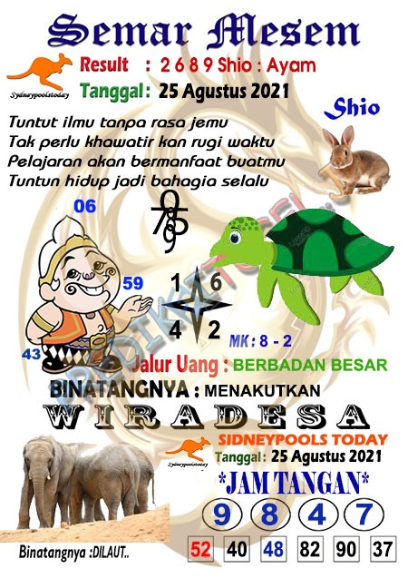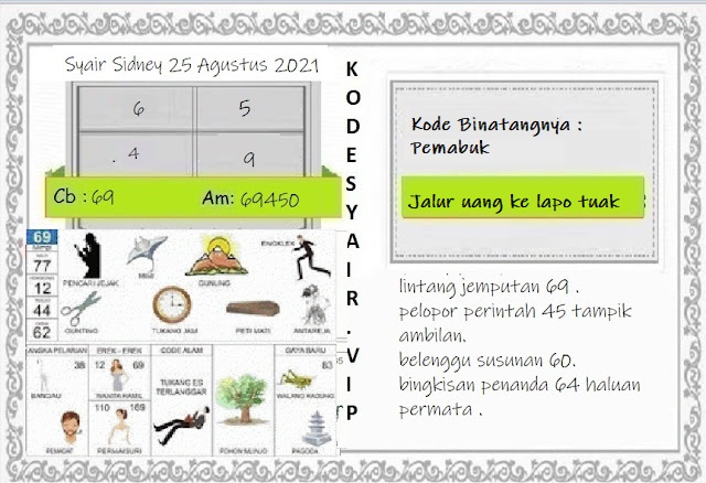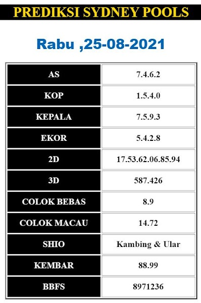 Oh ya, Selalu pergunakan naluri anda untuk membaca makna dari Prediksi Syair Sydney 25 Agustus 2021. Janganlah membaca Prediksi Syair Sydney Terjitu dengan terlalu menggebu – gebu dari makna syair yang telah kami berikan. Pahamilah dengan pelan hingga mengerti maksud dari syair yang paling banyak dicari oleh pemain judi togel online ini. Setelah kalian memahami prediksi Syair Sydney ini Kemenangan dengan lebih mudah bisa kalian raih.